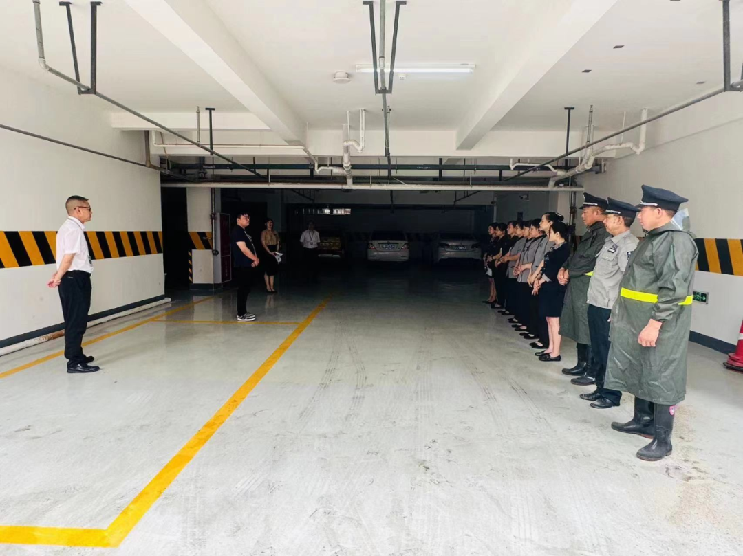 本次演練主要模擬強降雨導致酒店地下室排水溝泄洪困難,雨水倒灌至地下停車場的險情。隨著一聲令下,按照應急預案流程,險情逐級上報,各應急小組有序開展防汛工作,在最短時間內(nèi)控制住險情。